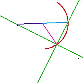 3.Puisque le triangle ABM est rectangle en M et que ce point est toujours sur le cercle de diametre de l'hypotenuse, alors nous pouvons dire que AI=IB=IM.