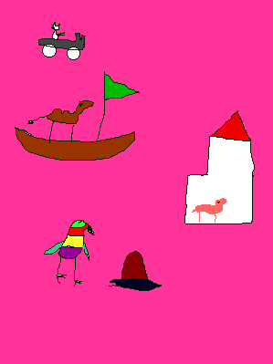 Le château de Tuileplatte Au château de Tuileplatte J'ai trouvé, Un léopard L'oiseau Le chien Le lapin La baleine Et le chat |