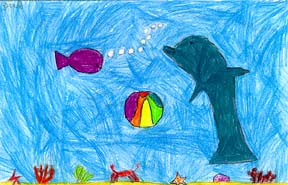 Il était une fois, dans la mer, un dauphin et ses parents.