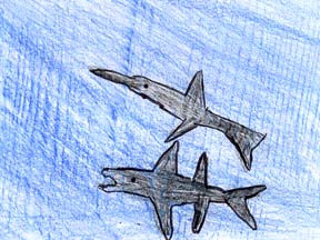 Elle les emmena dans une mer noire. Le requin et le dauphin cherchèrent