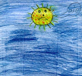 Le soleil a très sommeil Il est très malade: Il a la rougole. Il est obligé d'aller chez le docteur Qui va lui faire une piqure dans le dos.