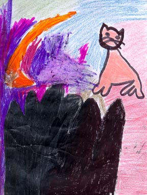 Le chat est dans la lune. Le cheval dit : << Ce chat rêve toute la nuit! >> Le matin, le cheval est fatigué, Et le chat est encore dans la lune. Alors le cheval lui dit: << Ce chat rêve même le matin! >>