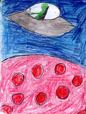 Dans le futur, Il y aura un extraterrestre Qui vivra dans la lune. Il ira sur Mars dans sa fusée Et avec un robot il s'amusera. Mais pas avec son vieux robot Avec le nouveau robot, il s'en ira.